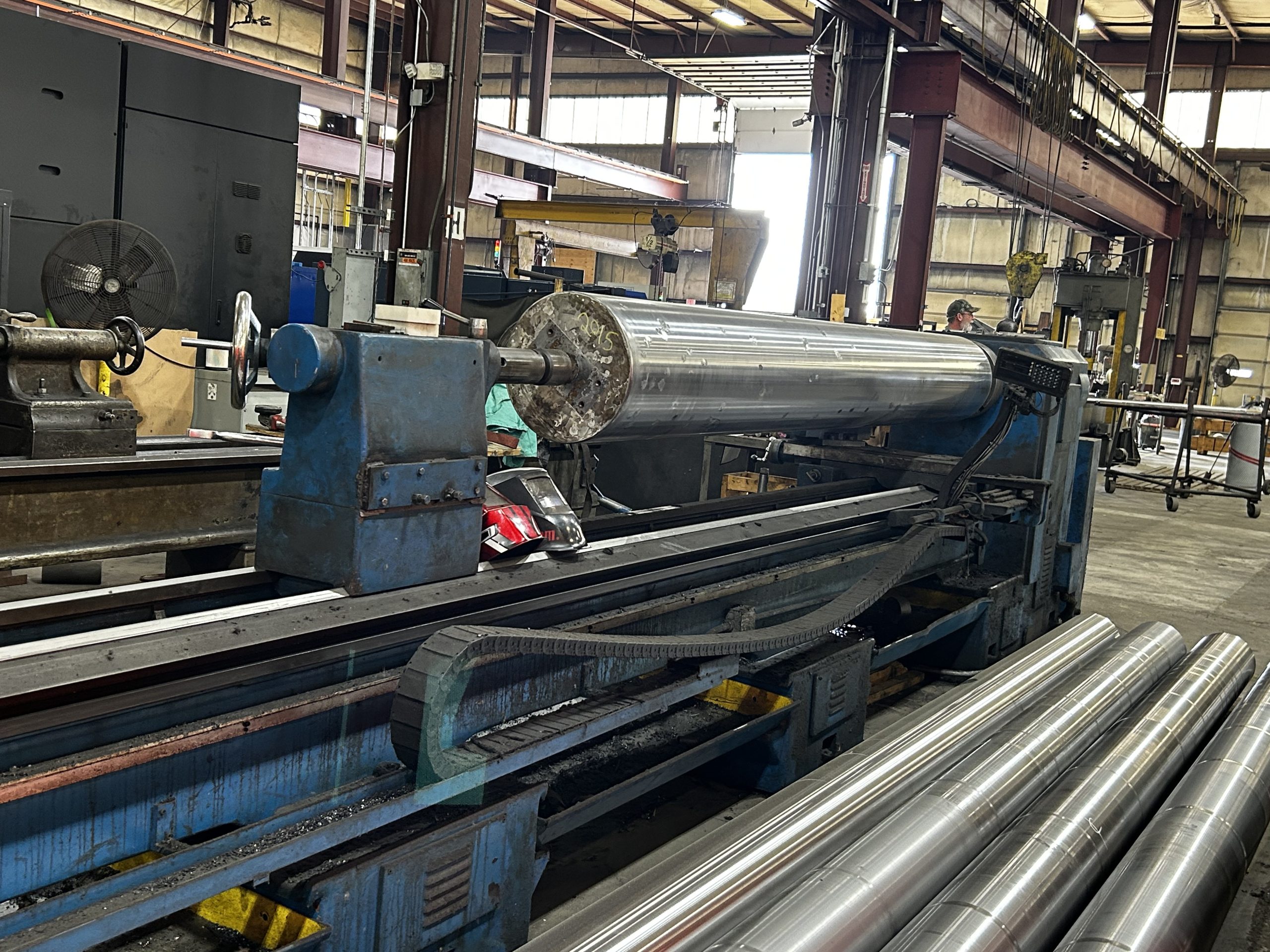 Manual and CNC turning capabilities allow us to meet the most demanding specifications using a wide range of materials. Our maximum capacity is 210″ in length and 36″ diameter — ideal for large industrial rollers, mandrels, and arbors.